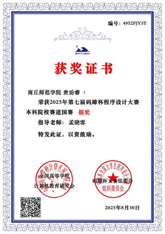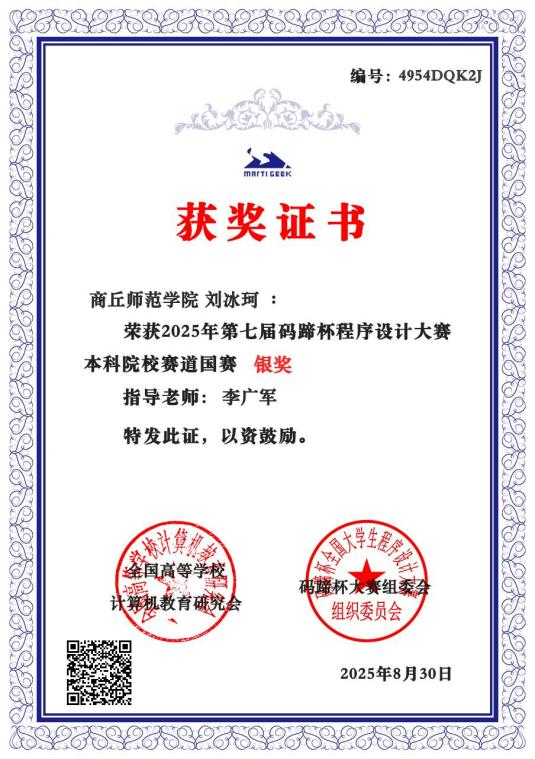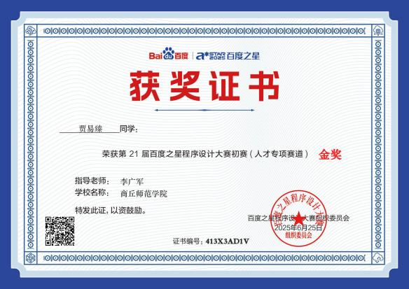 同时,世界杯体育作为2025年“码蹄杯”编程实训基地,世界杯体育学子在参加码蹄杯比赛的同时,也参加了百度之星“人才专项”赛道,取得了优异的成绩,斩获国家级奖项:2枚银奖、4枚铜奖;省级奖项:4枚金奖,10枚银奖,10枚铜奖。