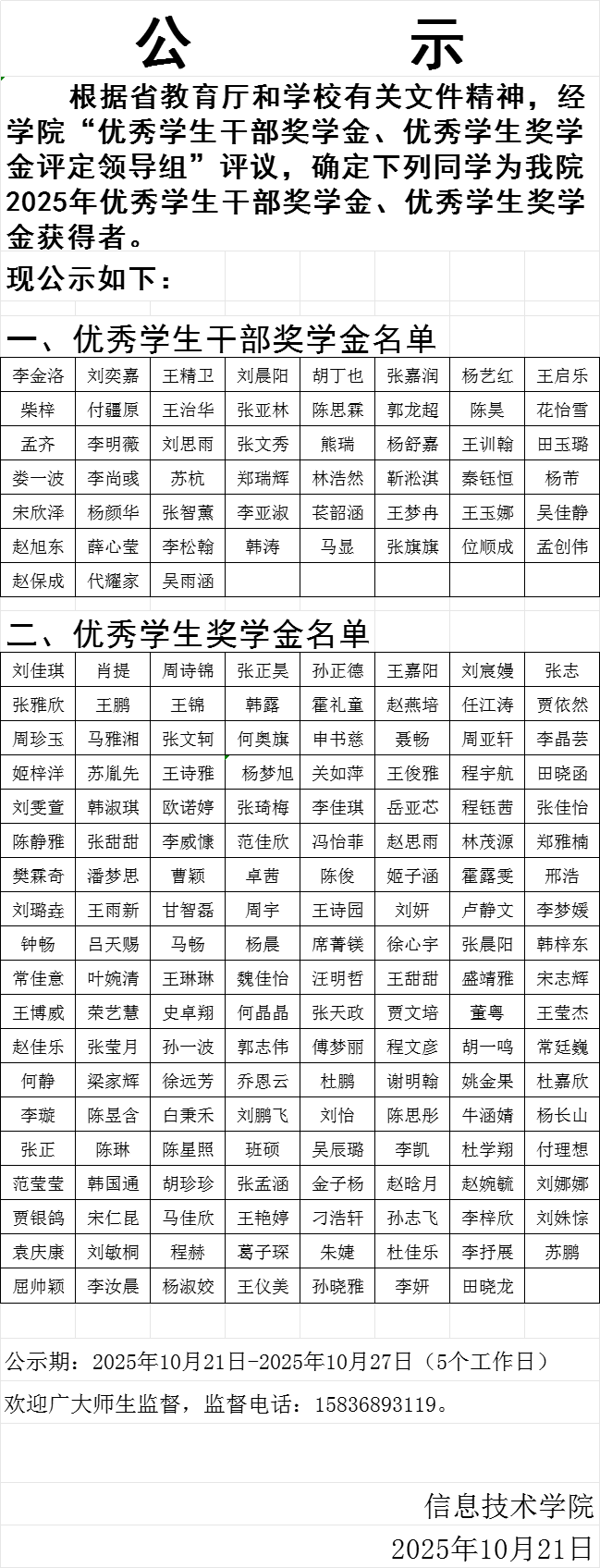 世界杯体育官方网站2025年优秀学生干部奖学金、优秀学生奖学金评选结果公示