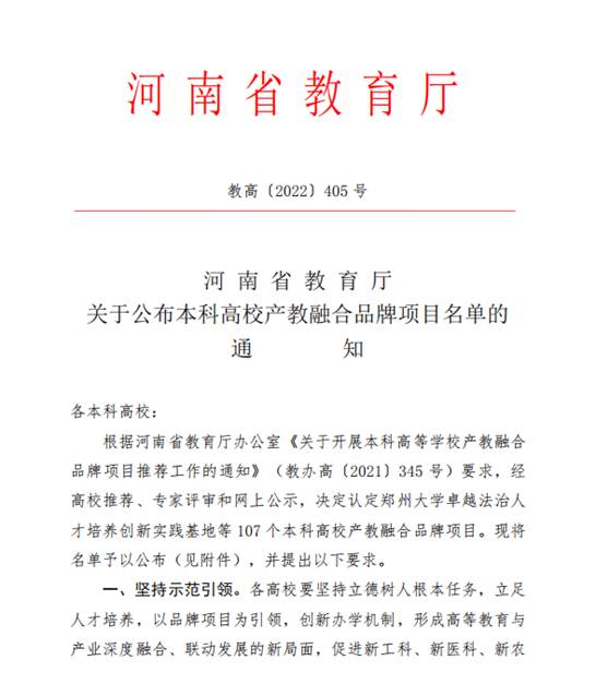 近日,河南省教育厅下发《关于公布本科高校产教融合品牌项目名单的通知》(教高〔2022〕405号),世界杯体育世界杯体育官方网站申报的《基于人工智能技术的智慧教育平台建设》获批共建实践教学条件和基地项目。