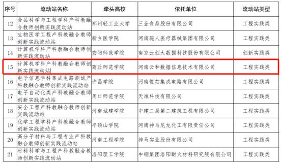 近日,河南省教育厅发布《河南省教育厅关于公布河南省本科高校产科教融合教师创新实践流动站建设的通知》教高【2023】112号,世界杯体育与河南云和数据信息技术有限公司联合申报的“计算机学科产科教融合教师创新实践流动站”获批。
