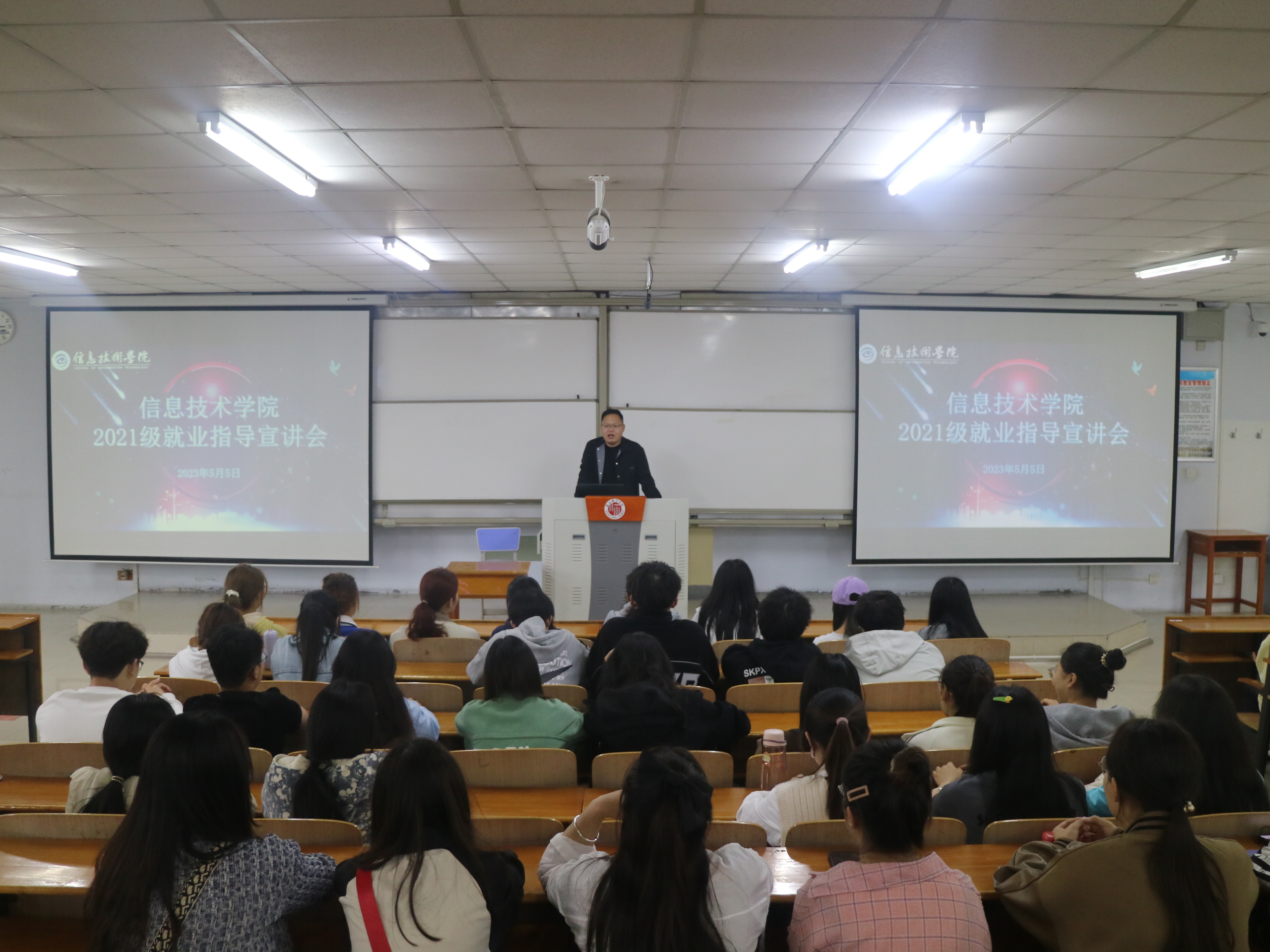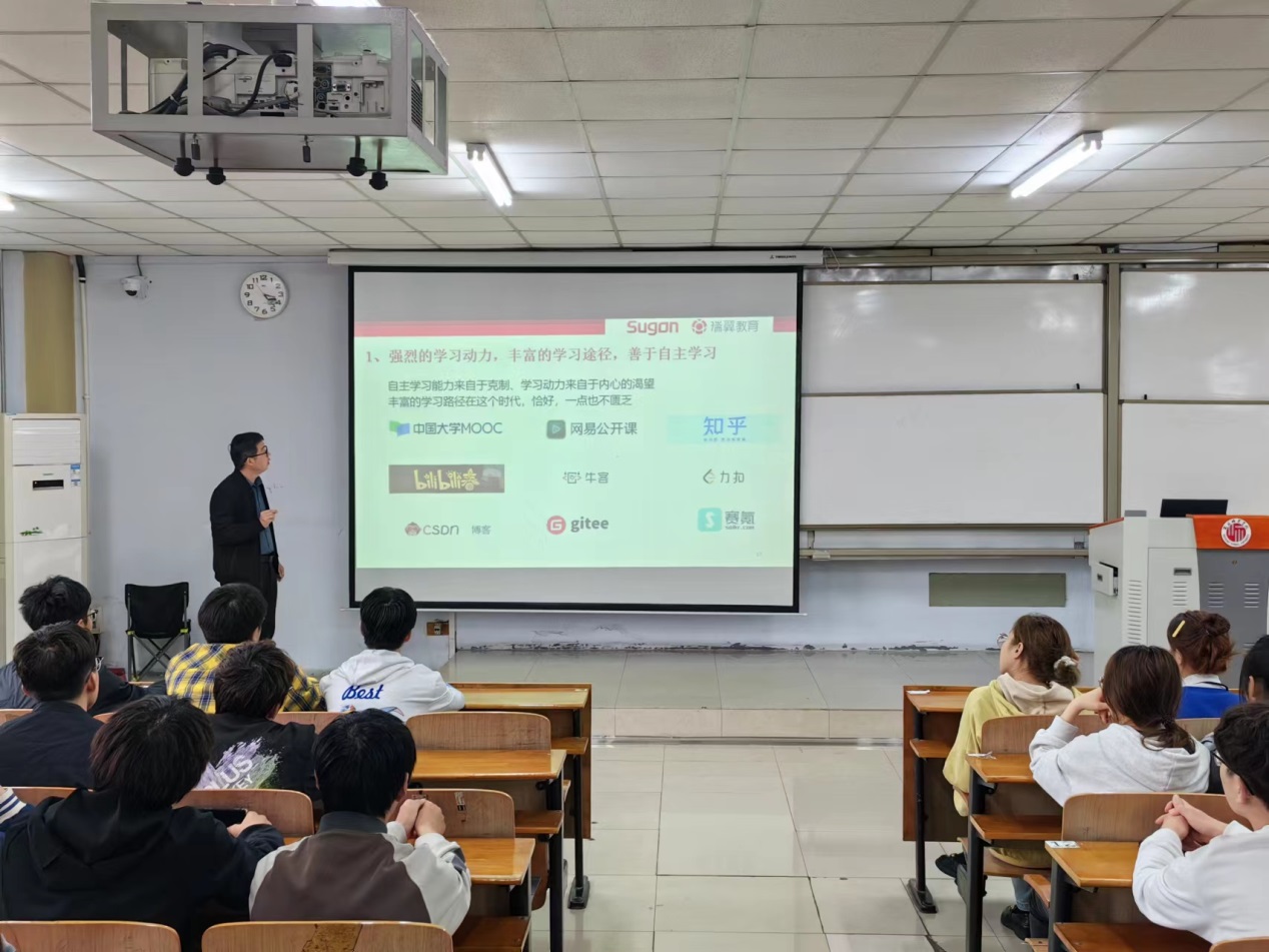 5月5日,世界杯体育官方网站在智圆楼207教室举办了2021级学生就业指导宣讲会。宣讲会由2021级辅导员老师彭会锋主持,中科曙光驻校项目经理高向楠主讲,世界杯体育官方网站2021级本科班学生积极参与。