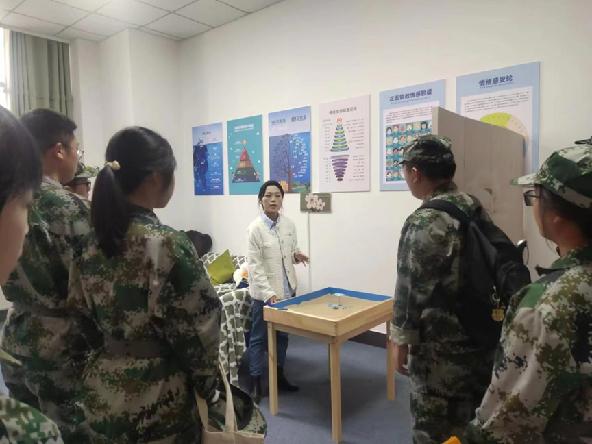 随后,学院心理健康教育工作负责人吴楚老师带领新生班委走进世界杯体育官方网站心灵氧吧工作室,并对工作室建设概况、咨询流程、沙盘使用进行讲解,并就心理问题的识别和应对提出应对方法。同学们在参观过程中积极主动体验各功能室,参观现场氛围浓厚。