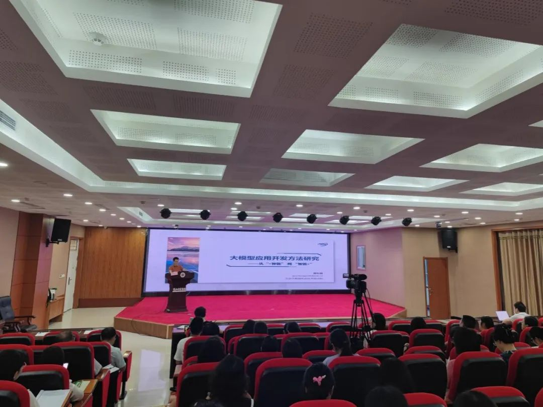 上午的研讨会以北京大数据先进技术研究院副院长郭长国博士的报告《大模型应用开发方法研究》拉开帷幕。他从AI的“+智能”到“智能+”的转型、智能+应用开发的新范式、智能+应用开发的技术与实践探索,以及对此的总结与思考等五个核心维度,进行了全面而深入的阐述,并详细讲解了如何有效利用大型模型来优化教学资源开发。