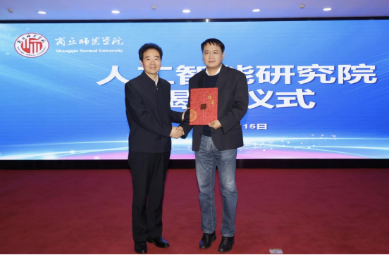 商丘市工信局、商丘市科技局、商丘高新区主要负责同志,华中科技大学、西安电子科技大学、郑州大学、河南大学、海南大学等国内高校专家教授,阿里、百度、乐想新能源装备、人机物智谷科技等企业代表,学校相关部门、二级学院负责同志参加了揭牌仪式。