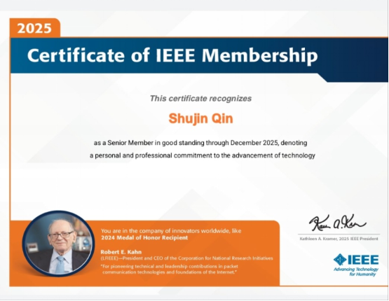 近日,国际电气与电子工程师协会(Institute of Electrical and Electronics Engineers, IEEE)正式发布官方通知,经审查专家组(Review Panel)严格评审,世界杯体育秦术晋老师成功晋升为 IEEE Senior Member(IEEE 高级会员)。