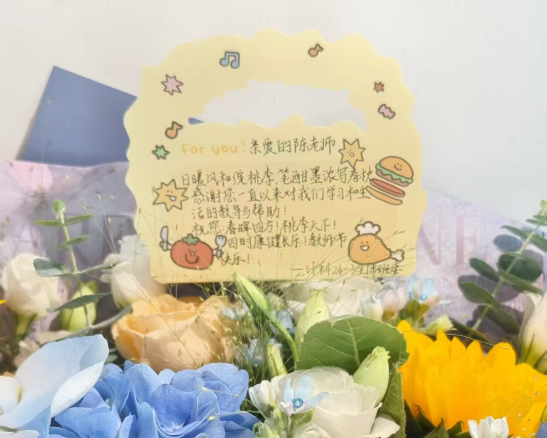 此外,各学生组织自发向办公室、教研室老师送祝福,手写贺卡载心意,老师们触之动容,现场温情漫溢。