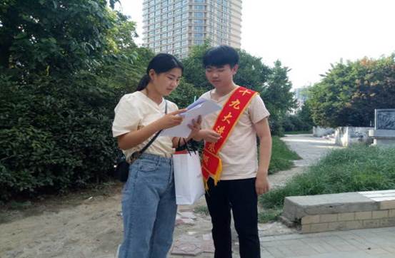 到达廉政广场后,志愿者对廉政广场上的市民展开分层交流采访,分别对青年和老年人进行访问,发现不同年龄阶段所关注的十九大政策不同,但是他们都对十九大的惠民政策非常满意,并对党的十九大精神表示支持,同时对志愿者的交流活动进行鼓励和赞美。