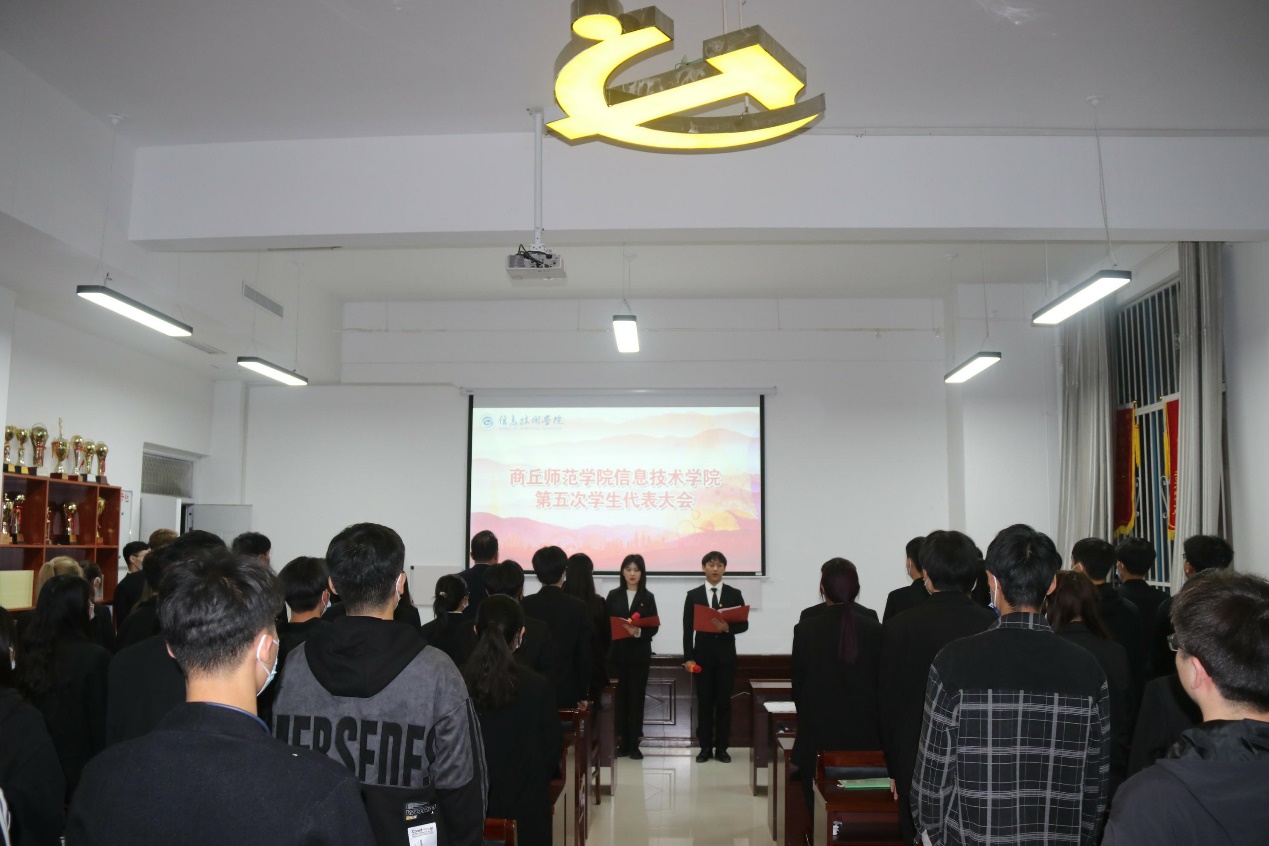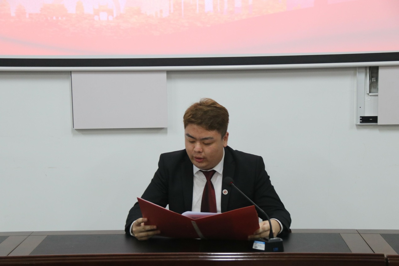 首先,全体起立奏唱中华人民共和国国歌,会议正式开始。世界杯体育官方网站校学生会主席团成员张璐丹代表校学生会致辞。她讲到面对新形势、新任务,高效的学生会工作要以习近平新时代中国特色社会主义思想为指导,深入贯彻党的十九大精神,带领学院学生与时俱进,开拓进取,努力拼搏,认真回顾和总结上届学生会工作,把握时代脉搏,取得更加辉煌的成绩,以更饱满的工作热情和精神状态,弘扬青春正能量。