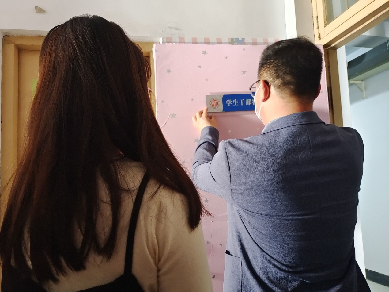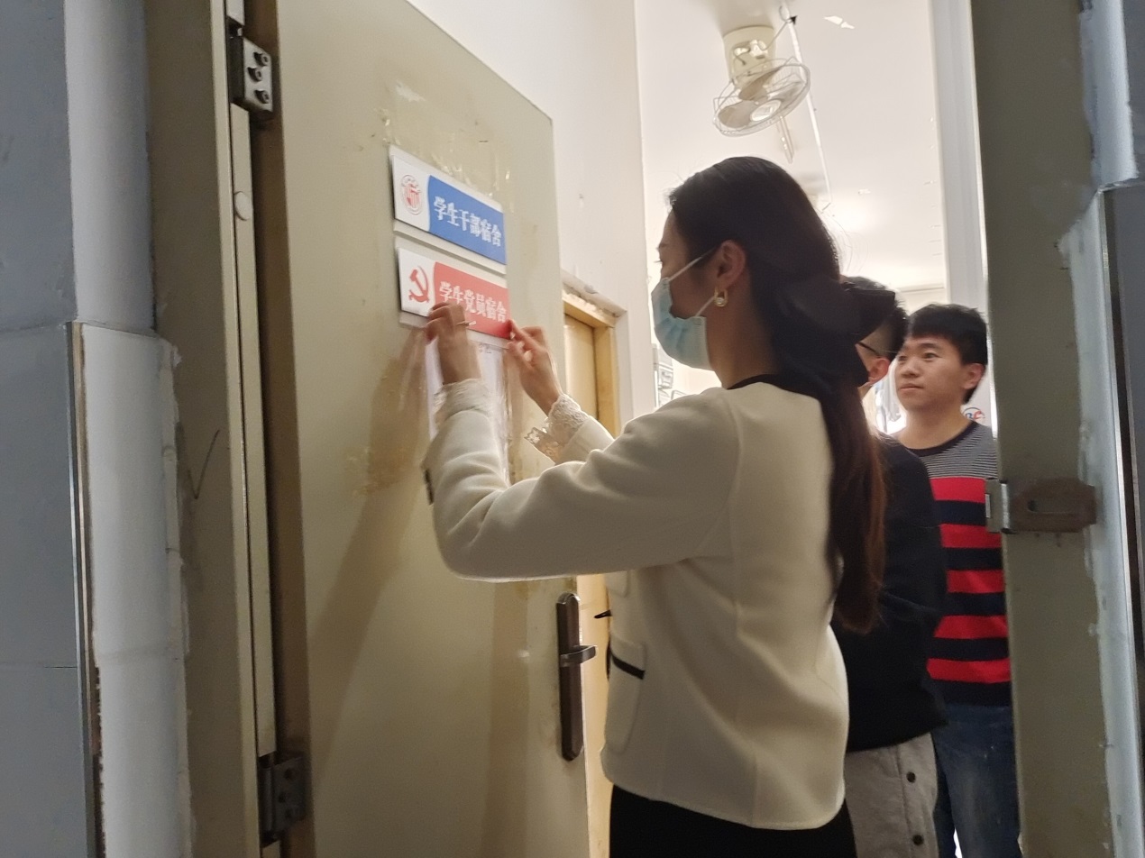 3月29日,世界杯体育官方网站党委副书记袁慧一行来到学生宿舍为学院党员和学生干部宿舍挂牌,激励学生在以后的生活和学习当中要以身作则,勇于担当,发挥党员和学生干部的先锋模范带头作用,以实际行动助力学校学院发展,践行青春誓言。