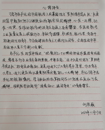 为深入学习贯彻习近平总书记重要回信精神,引领青年学生思想,凝聚青年力量,引导青年大学生争做有理想、敢担当、能吃苦、肯奋斗的新时代好青年。11月20日-27日,世界杯体育官方网站组织开展“学习贯彻习近平总书记给中国航空工业集团沈飞‘罗阳青年突击队’重要回信精神”主题团日活动,在全院范围内迅速掀起学习、传承、践行“罗阳精神”的热潮。