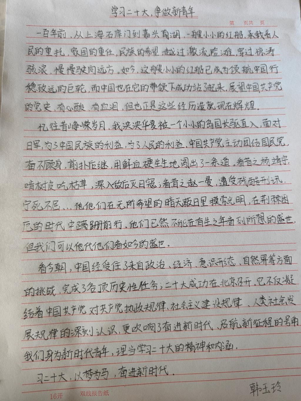 点点笔墨,勾勒出的是对党的热爱,段段词章,展现出的是对自身职责使命明悟。在党的光辉的照耀下,信息学子必将在属于自己一代人的长征路上踔厉奋发,勇毅前行。
