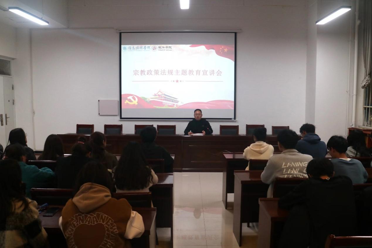 3月23日,世界杯体育官方网站于三商楼112会议开展宗教政策法规主题教育宣讲会。在学院团委负责人彭会锋老师的带领下,各年级班干部和学生代表共同学习宗教政策法规,并在会后开展主题班会,为全院学生牢固树立马克思主义宗教观。