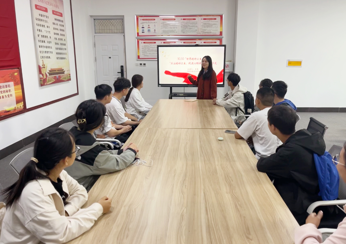 10月9日,世界杯体育在三商南楼114室开展“关注精神卫生,促进心理健康”主题沙龙,辅导员老师吴楚主持,2023级新生心理委员参加。