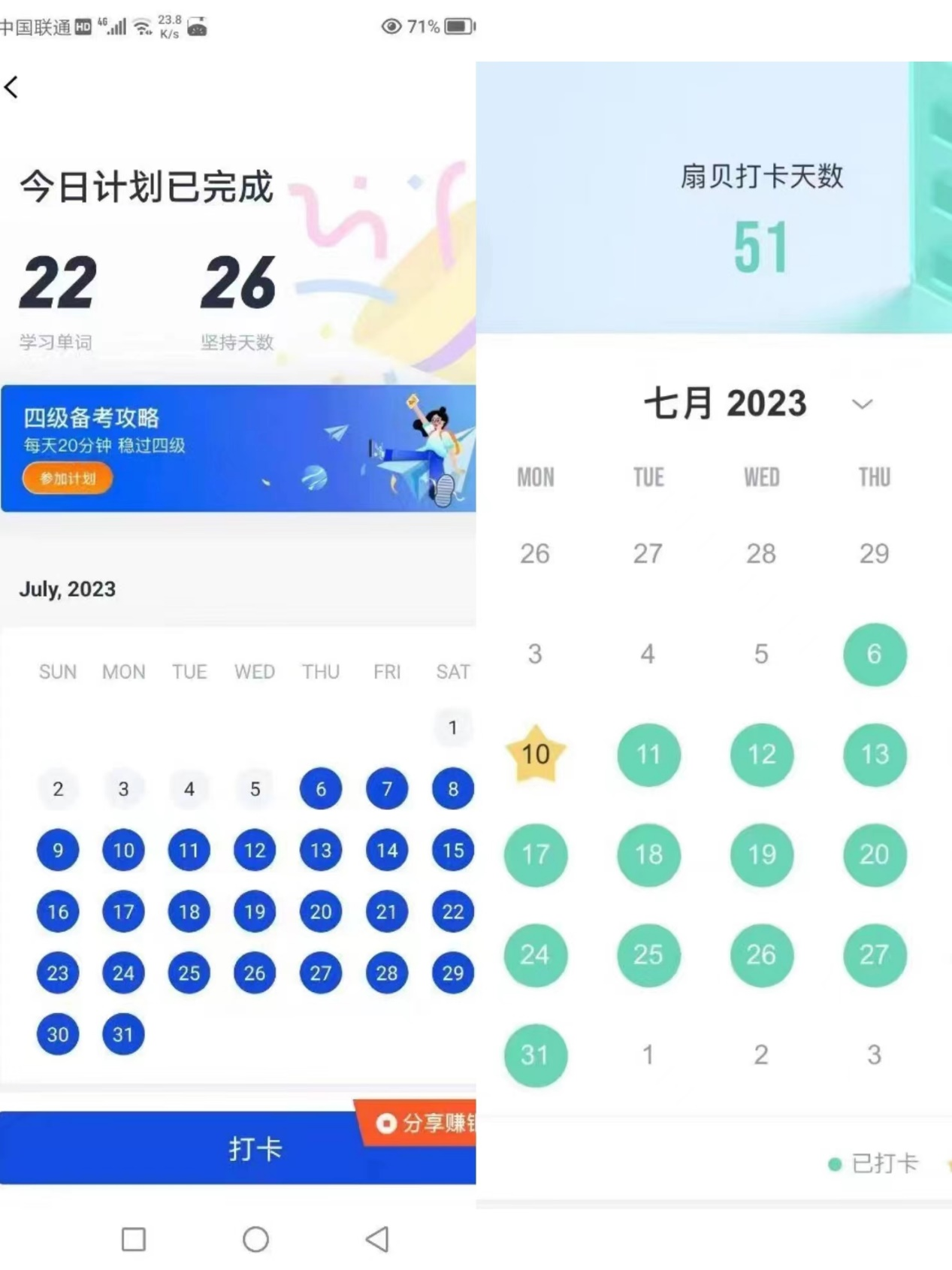 为提升学生英语学习积极性,切实提高四六级考试通过率,世界杯体育官方网站于7月6日起启动“英语打卡”活动,陪伴同学们四六级闯关之旅。