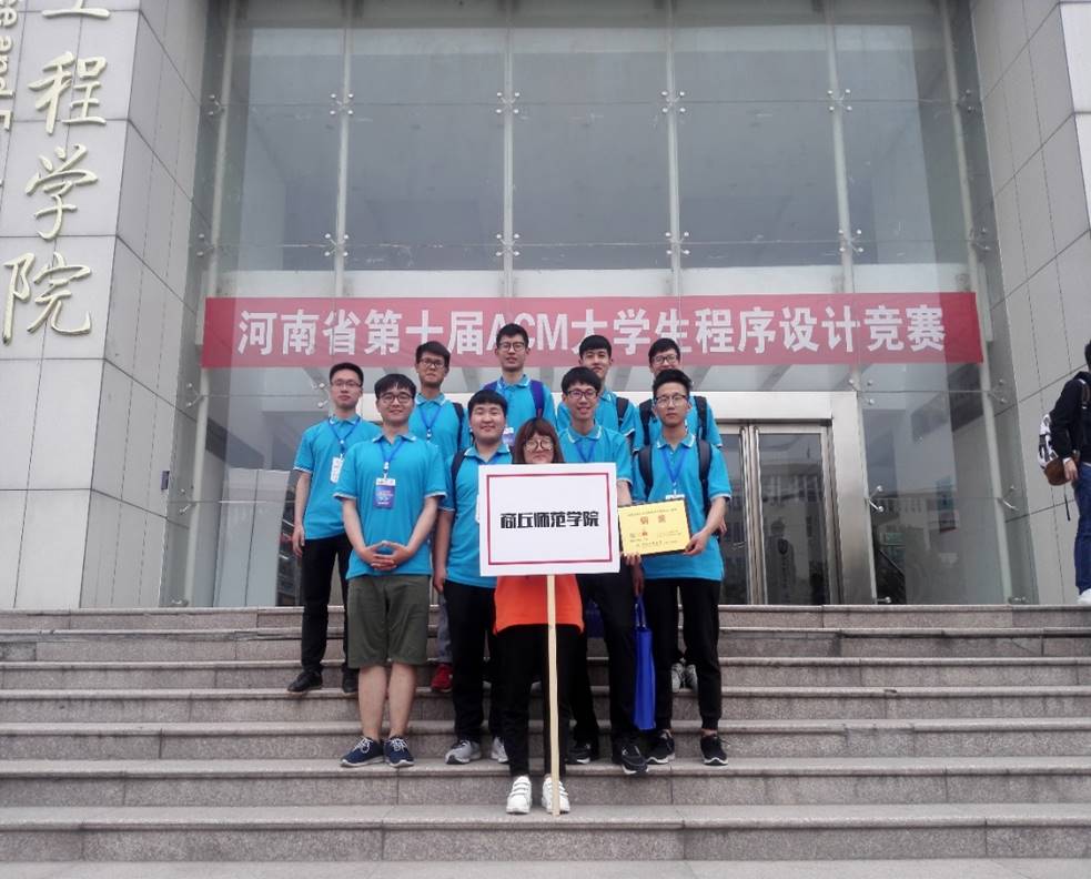 上图为河南省第十届设计大赛参赛队员合影,此次竞赛中由郭智、包恒昌、吕思组成的"逗比们,地震了,快跑啊"队荣获铜奖 ,由万里鹏、李昌迪、付笑组成的"码农的名义"队获得优秀奖。此次参赛由李广军老师,张瑞老师,王海燕老师领队。