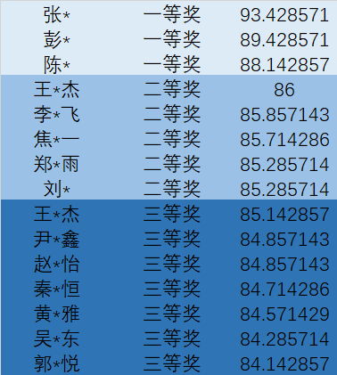 获奖名单如下