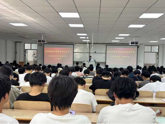 魏雨欣为新生详细解读了国家奖学金、助学金、助学贷款和勤工助学等多项资助政策的申请条件与流程,确保经济困难学生“应知尽知、应享尽享”。她强调,学校已建立完善资助体系,绝不会让任何学生因家庭经济困难失学,鼓励大家安心学业。