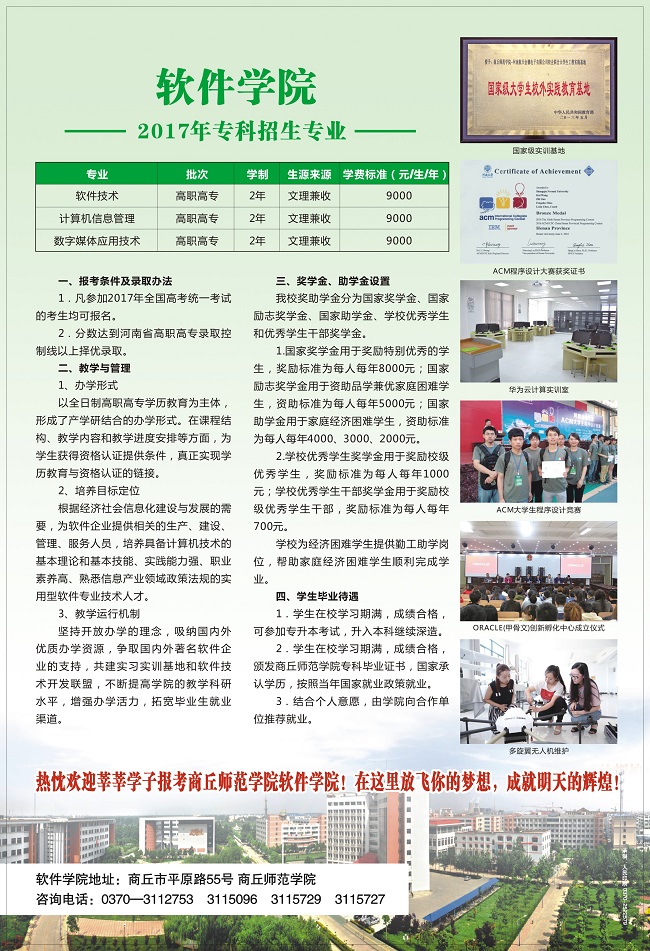 2017年软件学院专科招生简章