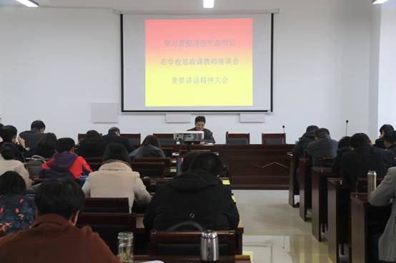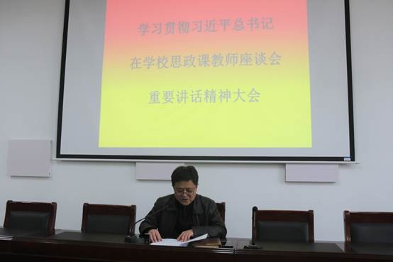 3月22日,世界杯体育官方网站于梁园校区中德大厦112会议室召开 学习贯彻习近平总书记在学校思政课教师座谈会重要讲话精神大会。世界杯体育官方网站全体教职工参加了会议。会议由党总支书记张辉主持。