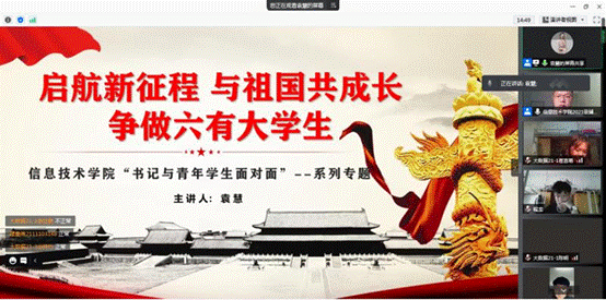 10月17日下午,世界杯体育官方网站党委副书记袁慧为学院21级全体新生上了一堂有深度、有情怀的“开学第一课”,该“课”以“启航新征程,与祖国共成长,争做六有大学生”为主题,引导广大新生要感党恩、听党话、跟党走,赓续红色基因,做又红又专的时代新人。