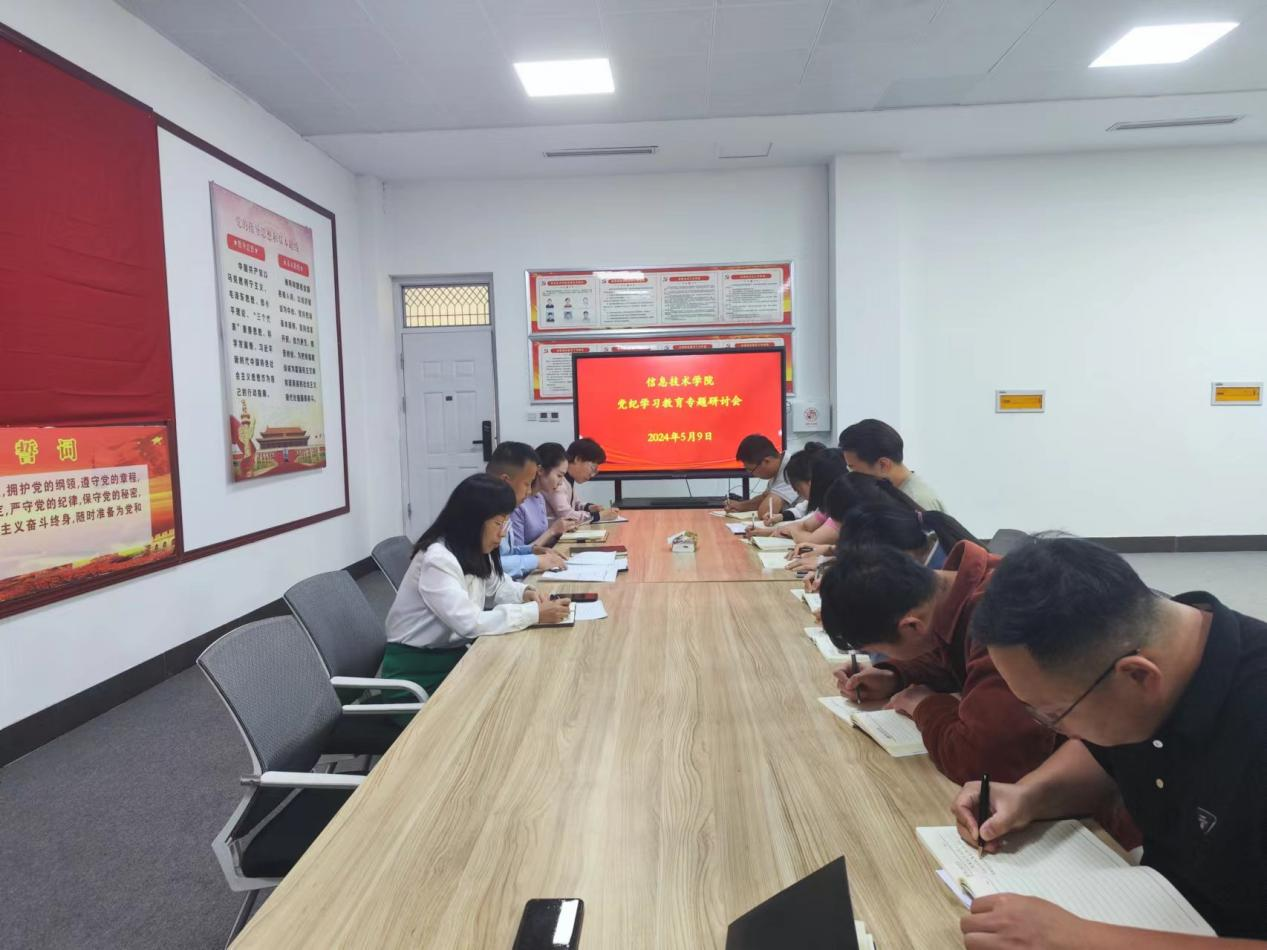 5月9日,世界杯体育官方网站于三商楼114会议室举行党纪学习教育专题研讨会,世界杯体育官方网站领导班子成员、教师党员代表和学生党支部书记参加会议。会议由学院党委书记王国华主持。