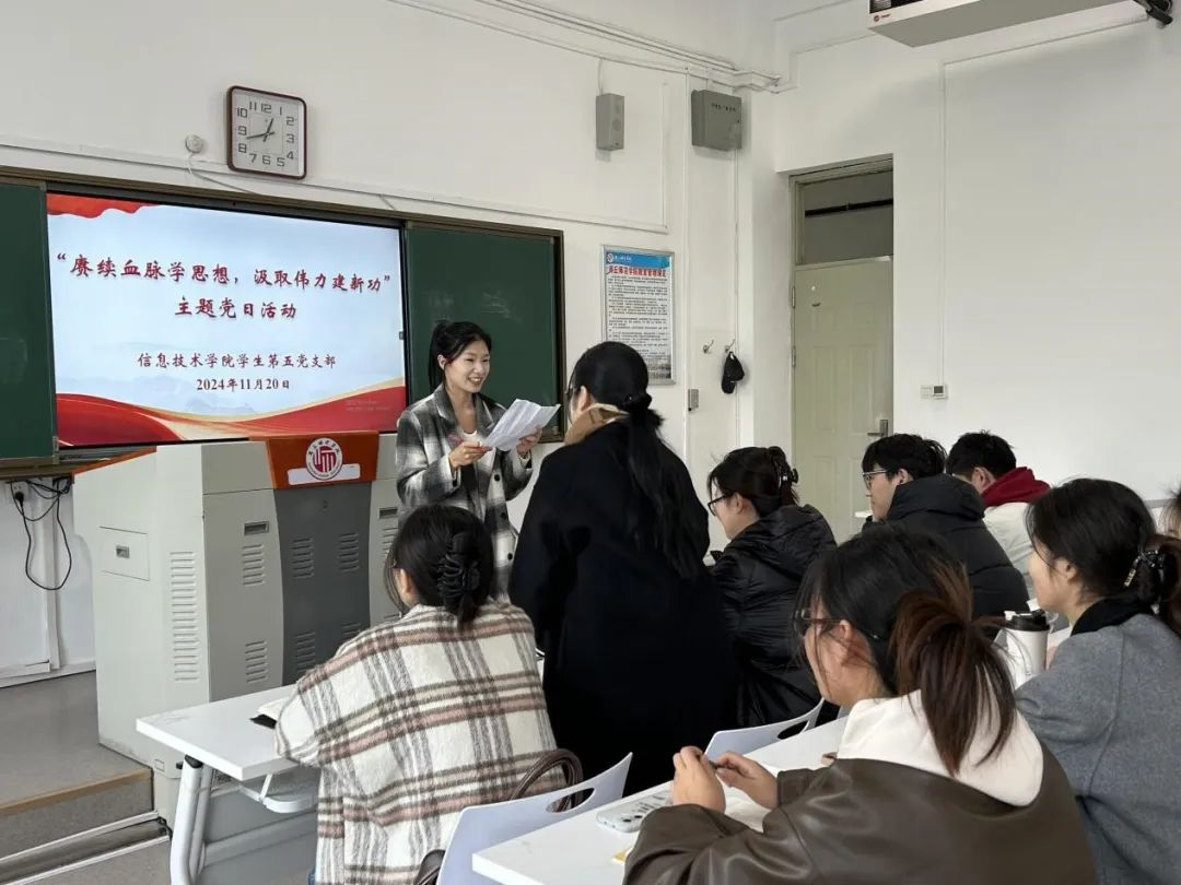 11月20日,世界杯体育官方网站学生第五党支部在行方楼305教室开展“赓续血脉学思想,汲取伟力建新功”主题党日活动,活动由党支部书记吴楚主持,支部全体党员参加。