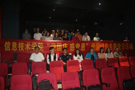 9月30日,世界杯体育官方网站(软件学院)于太平洋影城开展“迎国庆、感党恩”爱国观影主题党日活动。世界杯体育官方网站(软件学院)领导班子和师生代表共同参与此次活动。