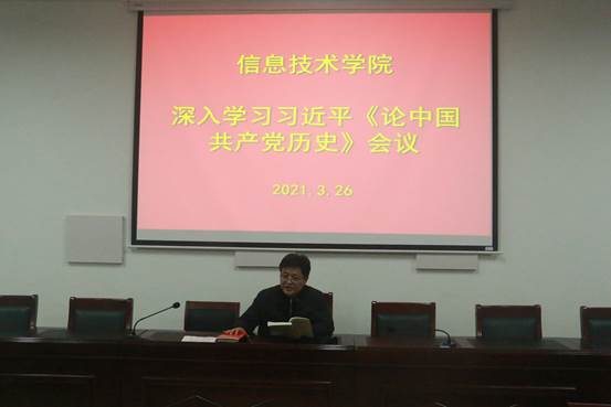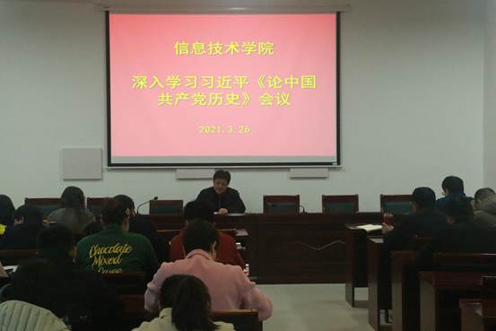 为了加强党史学习教育,迎接建党百年风貌。3月26日,世界杯体育官方网站于梁园校区三商楼112会议室举办深入学习习近平《论中国共产党历史》会议。本次会议由世界杯体育官方网站党总支书记张辉主持。全体教职工参加此次会议。