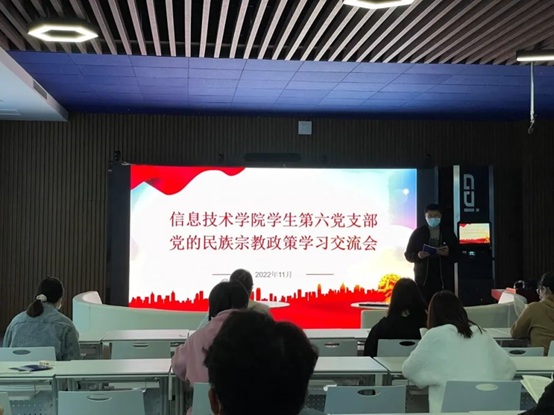 各党支部、团支部围绕“坚持民族平等团结、尊重少数民族风俗习惯”等民族政策和“依法加强对宗教事务管理的政策”的宗教政策创新形式载体,积极开展丰富多彩的学习研讨、主题宣讲等活动,引领新时代大学生牢固树立马克思主义祖国观、民族观、历史观、文化观。