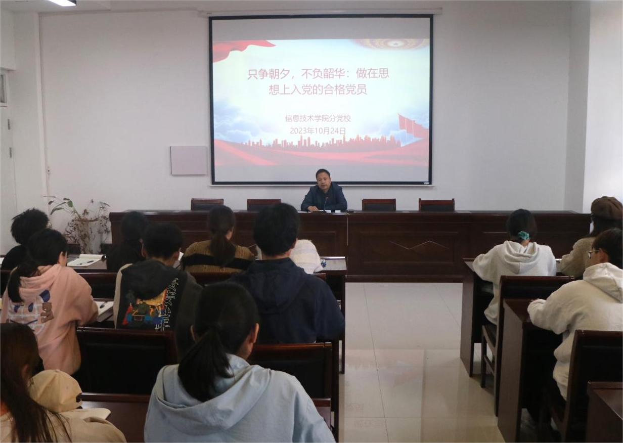10月24日,世界杯体育官方网站开展了以“只争朝夕,不负韶华: 做在思想上入党的合格党员”为主题的党课培训,本次党课由世界杯体育官方网站党委书记王国华主讲,全体中级班入党积极分子参加。