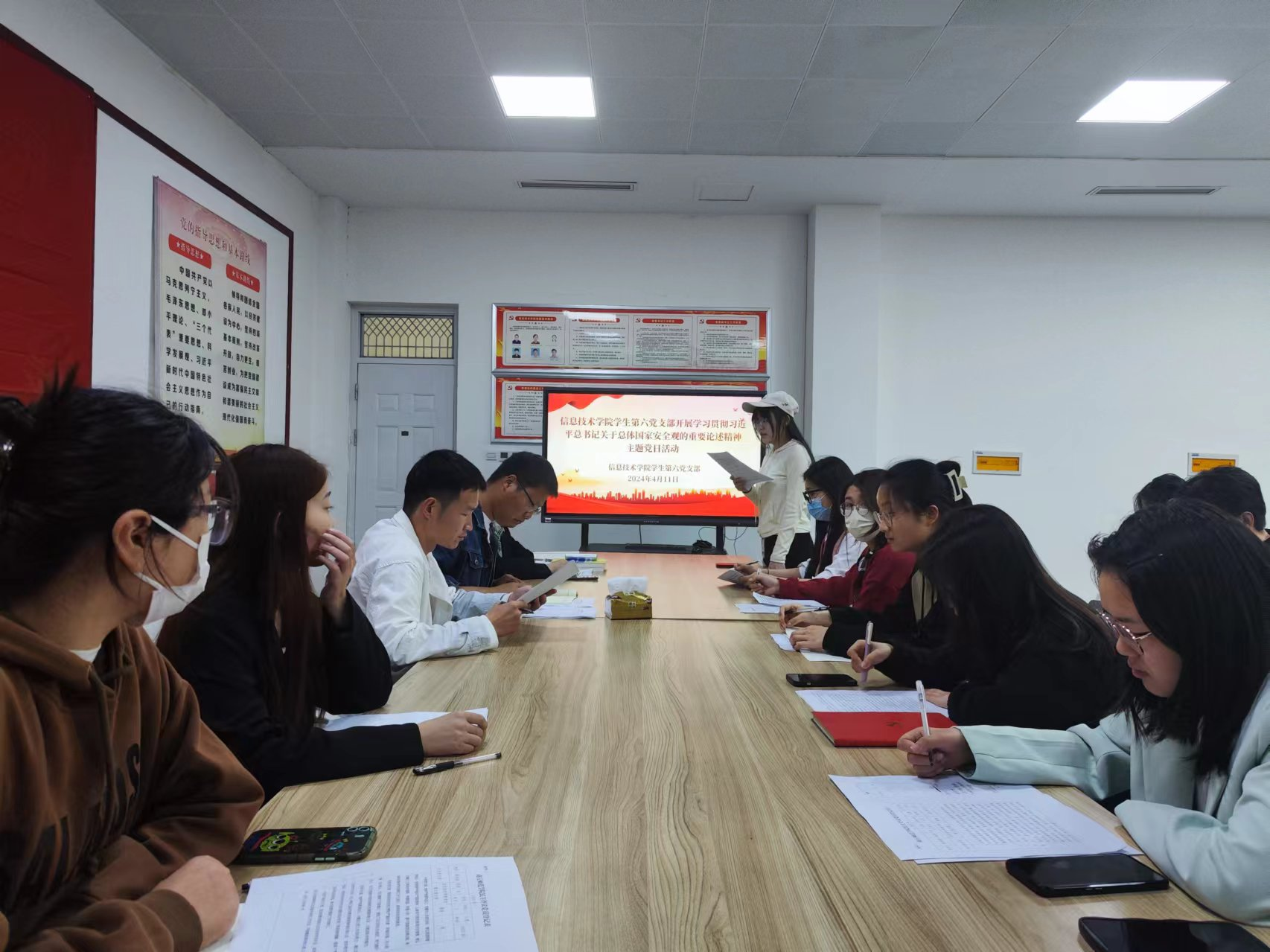 4月11日,世界杯体育官方网站学生第六党支部召开学习贯彻习近平总书记关于总体国家安全观的重要论述专题学习研讨会,进一步深化全体党员和积极分子对新时代国家安全的认识。世界杯体育官方网站学生第六党支部全体党员和入党积极分子代表参加。党支部书记杜冰主持会议。