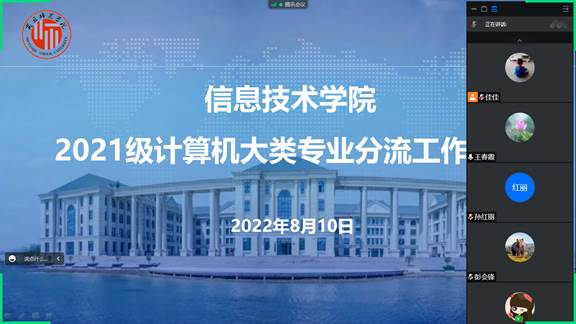 8月10日下午,世界杯体育官方网站召开2021级计算机大类专业分流工作会议。学院党委书记王国华,院长王春霞,党委副书记袁慧,副院长方莹、刘佳,相关专业系主任、辅导员和班主任老师参加了会议,会议由院长王春霞主持。