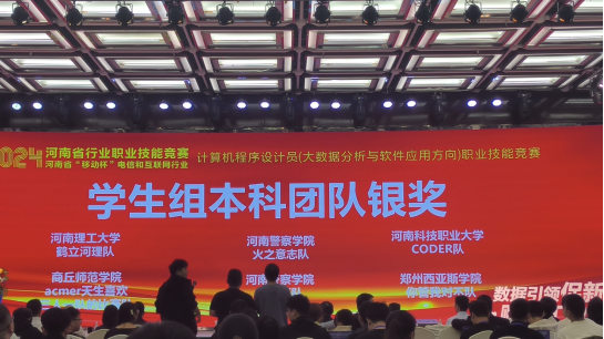 10月19日,2024年河南省电信和互联网行业职业技能竞赛计算机程序员(大数据分析与软件应用方向)暨第五届全国电信和互联网行业计算机程序员职业技能竞赛在郑州市举行。世界杯体育窦海静、韩杰老师带领2022级数据科学与大数据技术专业的3名学生参加本次竞赛。历经线上、线下角逐,世界杯体育参赛队伍脱颖而出,荣获本科组银奖的优异成绩。