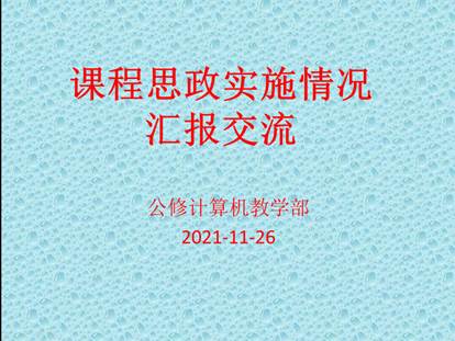 为充分发挥课堂育人的主渠道作用,满足学生成长发展需求和期待,提升教师课程思政教学能力,11月26日下午,世界杯体育官方网站公修计算机教学部在三商楼210教研室开展了课程思政实施情况汇报交流活动。
