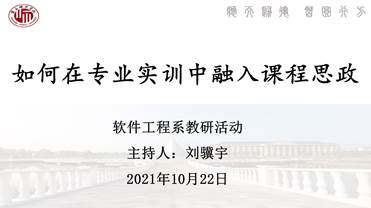 接下来各位老师就专业实训融入课程思政内容进行深度探讨,认为首先应调整教学目标中素质培养目标,培养学生的科技创新精神,强化学生的家国情怀,弘扬社会主义核心价值观。其次要深度挖掘项目案例相关的思政元素,鼓励学生进行价值观的塑造。在实际的教学实践中,结合软件工程实训的特点,在实际项目开发中找到合适的切入点,引入思政元素,对课程内容进行二次开发。