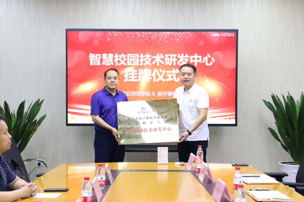 揭牌仪式上,辛作义对校企共建智慧校园技术研发中心等工作的顺利开展表示祝贺,对新开普电子股份有限公司等行业企业对学校发展的大力支持表示感谢,希望双方以共建校企技术研发中心为契机,进一步探索常态化校企合作交流机制,围绕行业产业技术需求,打造应用型科研标志性成果。