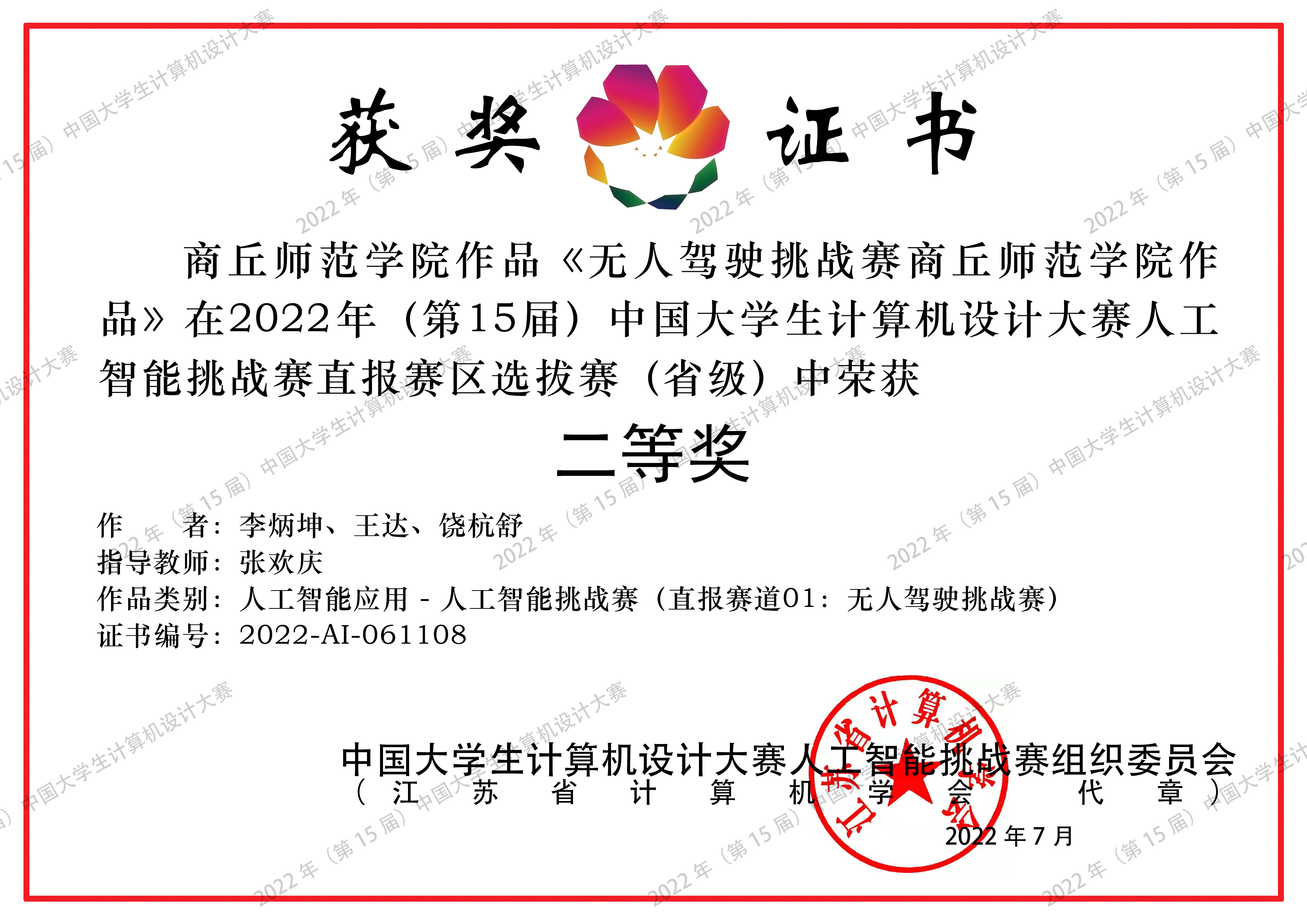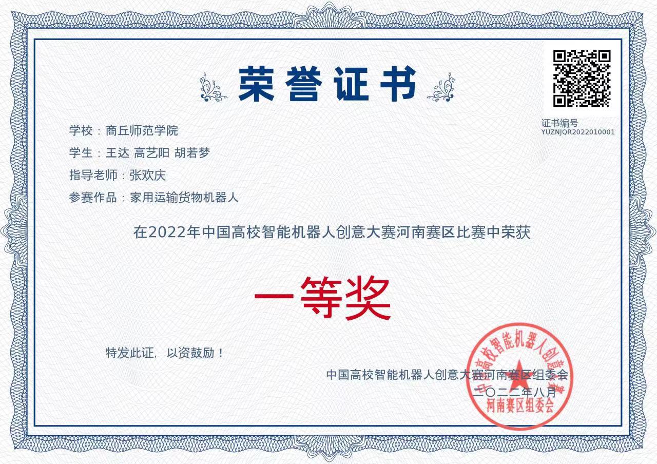 在第二十四届中国机器人及人工智能大赛智能驾驶赛的103支国赛队伍中,以全国第31名、河南省第3名的成绩获得全国总决赛二等奖1项,此前河南省赛时获得省级二等奖1项;在第五届中国高校智能机器人创意大赛中获得全国总决赛三等奖1项、省赛一等奖和三等奖各1项;在第十五届中国大学生计算机设计大赛中获得区域赛二等奖1项,已成功晋级全国总决赛。